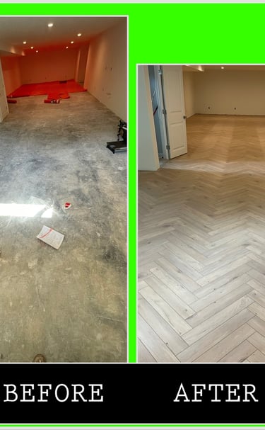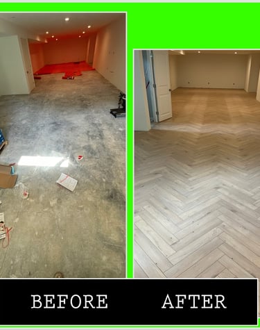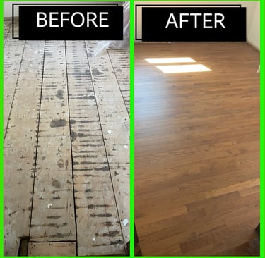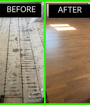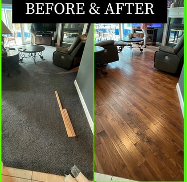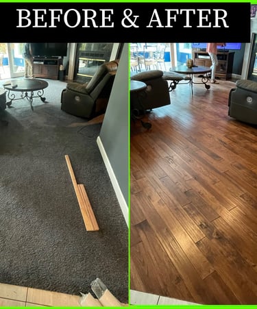 Worn-out floors replaced with rich hardwood that brings warmth and character to the entire room.